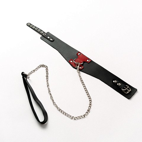 Длина поводка - 80 см. [~DETAIL_TEXT] => Широкий ошейник имеет декоративную вставку с кольцом для крепления металлического поводка с удобной ручкой. Ширина ошейника - 4 см.
