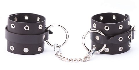Длина манжет - 25 см. [~DETAIL_TEXT] => Кожаные однослойные оковы с люверсами. Оковы имеют кольца для крепления и металлическую сцепку. Ширина манжет - 6,5 см.