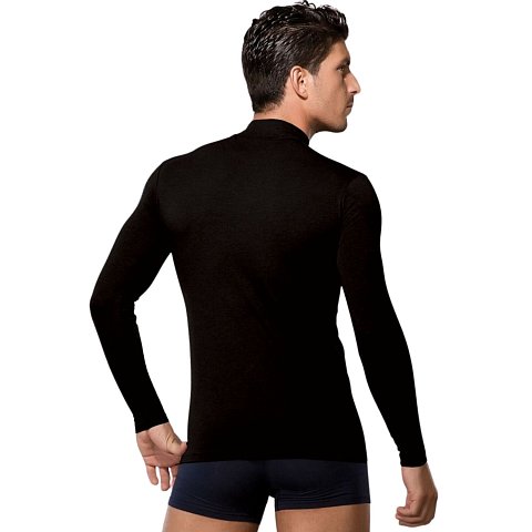 Лонгслив из натуральных материалов (хлопок + модал) с добавлением лайкры, что обеспечивает отличное сохранение формы даже после многократных стирок. Стильный воротник-стойка позволяет использовать эту футболку и как нижнее бельё, и как верхнюю одежду.