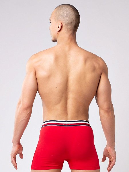 Мужские боксеры из мягкого хлопкового трикотажа необыкновенно комфортны. Брендированная резинка с вывязанным логотипом на фоне сине-бело-красных полос. Двухслойный гульфик, дополнительная вставка для большего удобства.