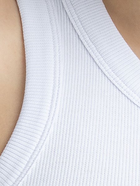 Женская базовая майка с американской проймой, в мелкий рубчик. Это идеальный вариант для жаркого лета и отличный нижний слой в межсезонье. Трендовый силуэт майки делает её необходимым предметом в каждом гардеробе.
