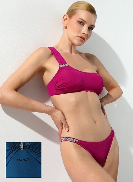 Раздельный купальник: бюстгальтер-бандо с мягкой чашкой, со съемными вкладышами, и трусики-слип. В комплекте: лиф, плавки.