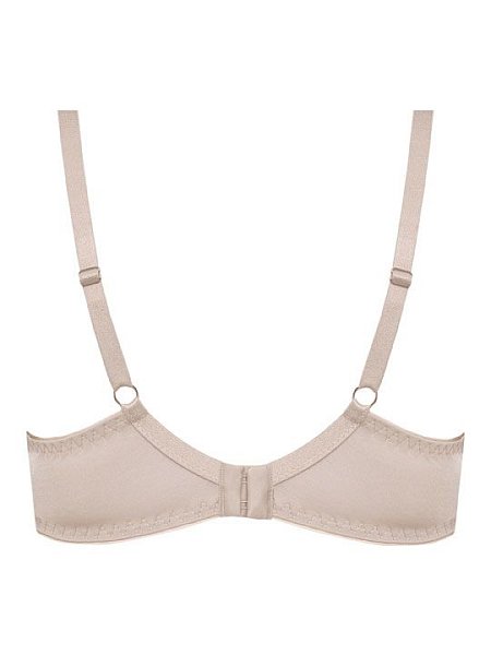 Бюстгальтер на косточках, с боковыми поддержками, чашки шитые, на тонком поролоне, с кармашками для съёмных пуш-ап вкладышей, внутренняя сторона проложена хлопковым трикотажем, внешняя сторона чашек покрыта кружевом с гипюром. Бретельки не съёмные, регулируются по длине.