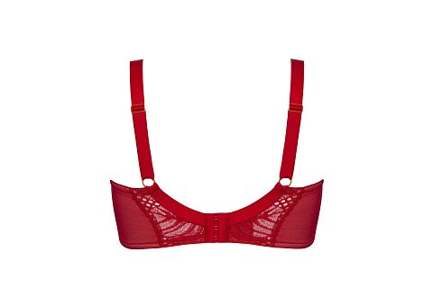 Бюстгальтер Beverly M выполнен на косточках, с дополнительными боковыми поддержками, чашки шитые мягкие, внешняя сторона кружевная, продублированы телесной сеткой, с боковым подкроем. Бретельки не отстёгиваются, регулируются по длине. На спине застёжка на удлинитель, количество крючков в ряду застёжки, увеличивается пропорционально размеру бюстгальтера. В зоне декольте дополнительные тонкие несъемные бретели, фурнитура металлическая цвета желтого золота.
