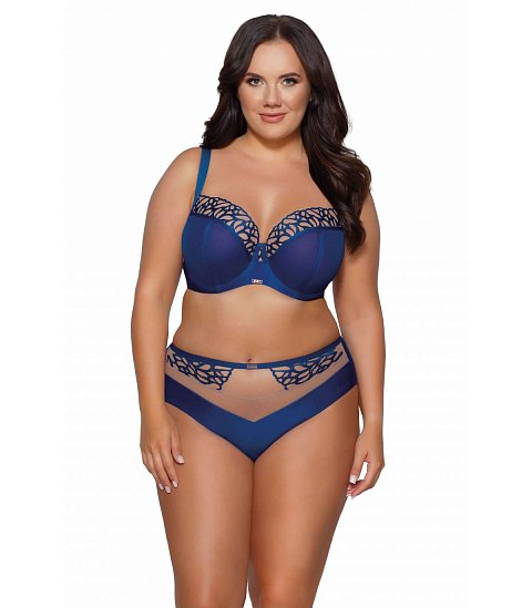 Бюстгальтер с формованными поролоновыми чашками на косточках, с двойными подвижными боковыми косточками, внешняя сторона гладкая, нижняя часть чашки и спинка из черного кружева, продублированного розовой сеткой. Бретельки отстёгиваются, регулируются по длине. На спине застёжка на удлинитель, количество крючков в ряду застёжки увеличивается пропорционально размеру бюстгальтера.