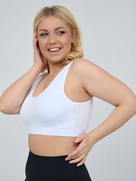 Бюстгальтер-топ в мелкий рубчик, со скрытым (внутренним) подкроем для комфортного удержания груди, широкие бретели, формованные вставки вынимаются, очень комфортный, микрофибра, V-образный вырез делает фигуру зрительно стройнее.