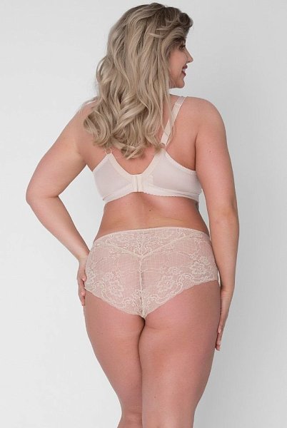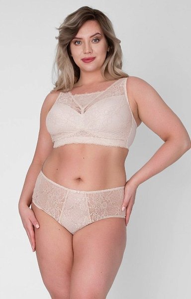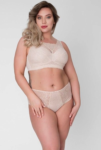 Бюстгальтер-топ выполнен с мягкими чашечками без косточек, чашки шитые из кружевного полотна, продублированы эластичной тканью в тон, под грудью пришита широкая эластичная резинка, спинка из стабилизирующей сетки, Бретельки регулируются по длине, не отстёгиваются, с подвижной фурнитурой-крючком для соединения бретелей на спине. На спине застёжка на удлинитель на 2 и 3 крюка. У данной модели довольно тугой пояс. Рекомендуем использовать удлинитель пояса бюстгальтера на первое время либо выбирать следующий за «своим» размер, с поясом длиннее.