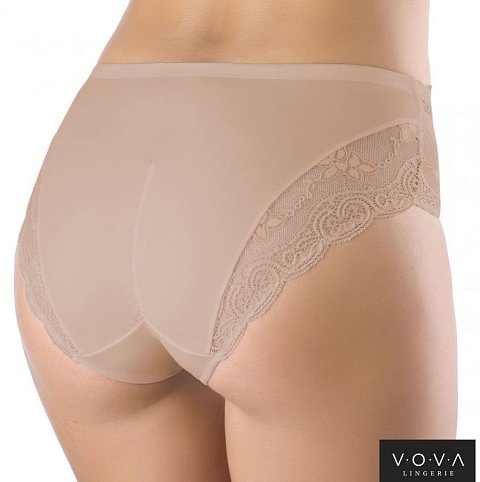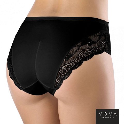 Трусики со средней линией талии. Линия бедра закрыта. По ножкам украшены кружевными деталями. Перед и спинку изделия украшает вставка из кружева. По талии настрочена окантовка-пояс из полотна с эластичной лентой внутри. Сборка по задней детали в области ягодиц создает легкий, визуальный эффект push-up. Внимание: европейские размеры! Для определения российского размера необходимо прибавить 6!