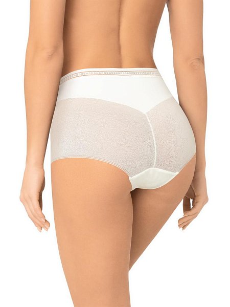 Трусы-слип с высокой линией талии. Передняя и задняя детали выполнены из микрофибры. Вырез бедра из цельнокройного кружева с сетчатой структурой. Широкая декоративная резинка, использованная для обработки талии, придает изделию ультрамодное звучание. Хлопковая ластовица. Упаковка - индивидуальная картонная коробочка. Материал: 84% нейлон, 16% спандекс